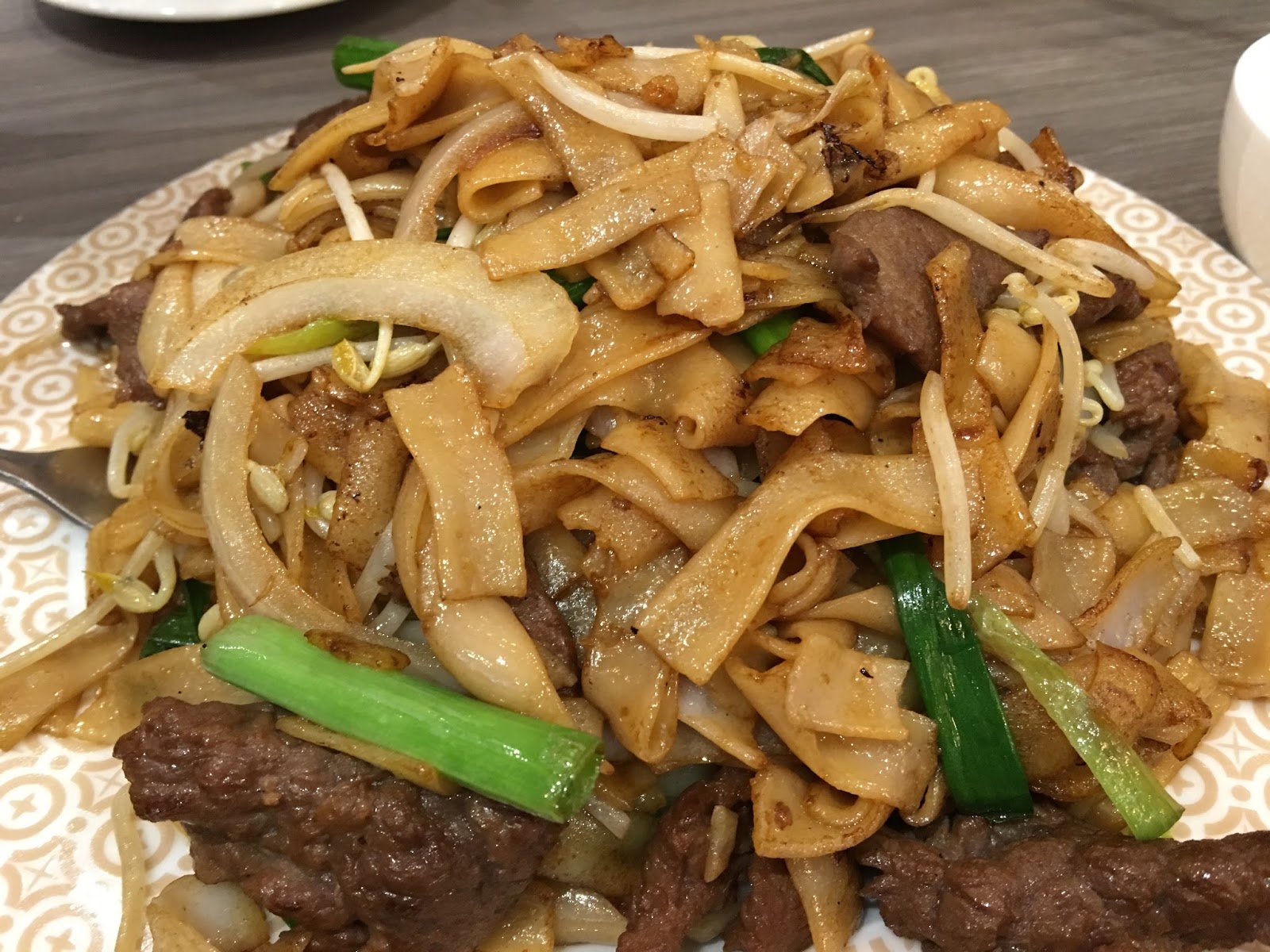 | 超級大盤的乾炒牛河,鍋氣很夠!味道不錯,但是料放得很少,全是河粉,我覺得喜相逢是吃飽不吃巧的那一種餐廳,味道不差,算是午餐不錯的選擇。 |